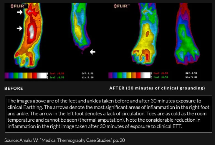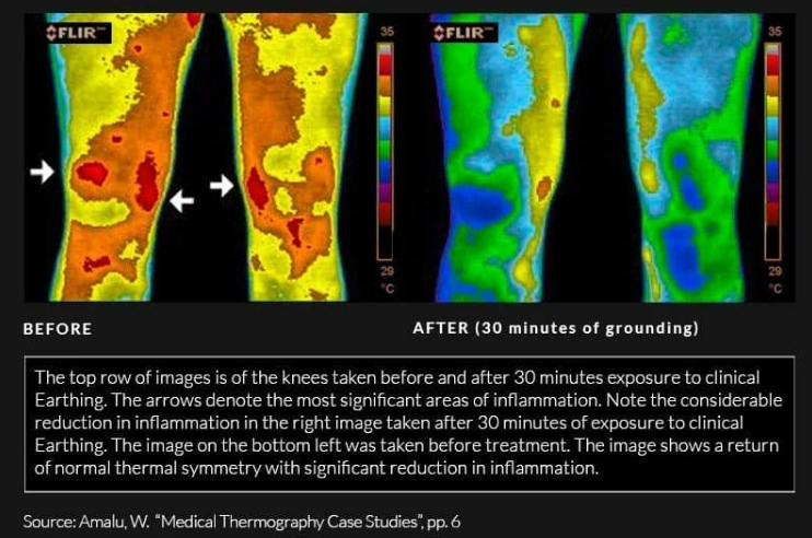 Grounding after an injury may significantly reduce or even prevent classic inflammation symptoms like redness, heat, swelling, pain, and loss of function. Studies using medical infrared imaging have shown faster recovery from chronic inflammation through earthing. This pain relief extends to both recent injuries and long-standing conditions such as arthritis. By altering the levels of white blood cells, cytokines, and other inflammatory markers, earthing positively influences the body’s inflammatory response, promoting better healing outcomes.